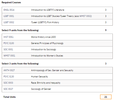 Check out the Course Outlines of Record for “Introduction to LGBT Studies”, “LGBT Culture and Society”, and “LGBT US Art and Culture” courses at City College of San Francisco! Check out those for “Introduction to LGBTQ Studies” and “Sociology of Sex and Gender” at Glendale Community College!